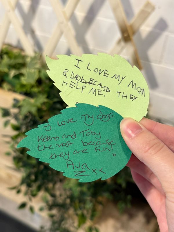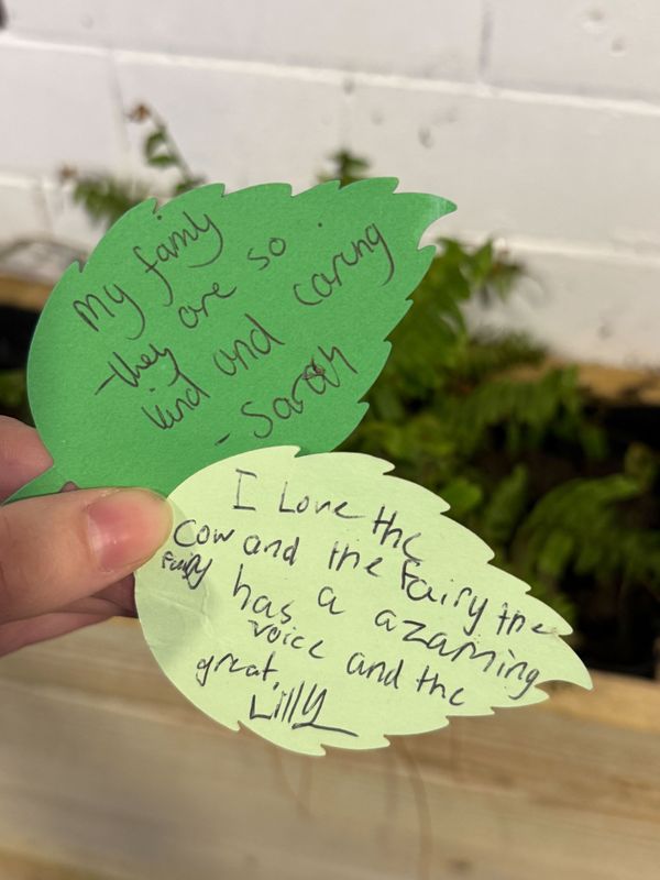 As part of last year's Golden Goose scheme for Jack & the Beanstalk, we put up a fabric beanstalk activation in our community garden. This new intiative asked audience members to write down a message about someone they love and pin it to the beanstalk. It was such a joy to hear from our community in this way - take a look below to see some of our wonderful submissions...
