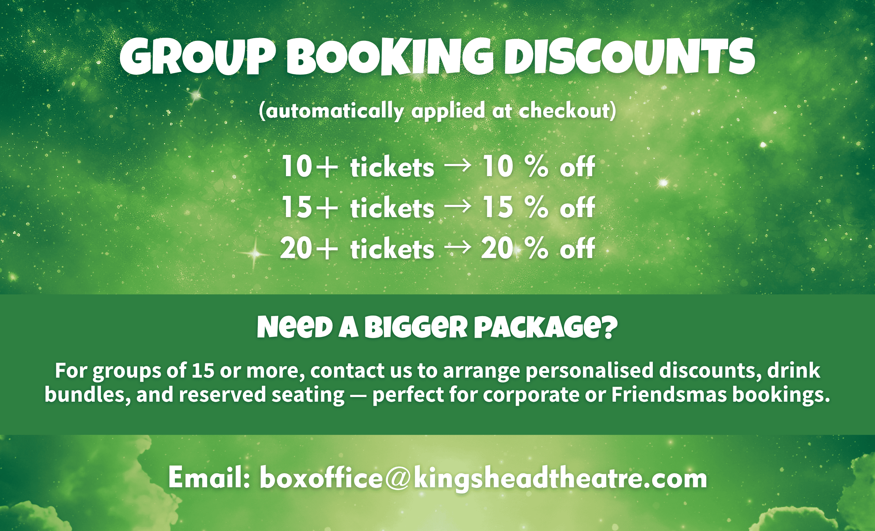 Join us at the King’s Head Theatre, Islington, for our 2025 Christmas pantomime — featuring both our cheeky Adults-Only Panto and our classic Family Show.