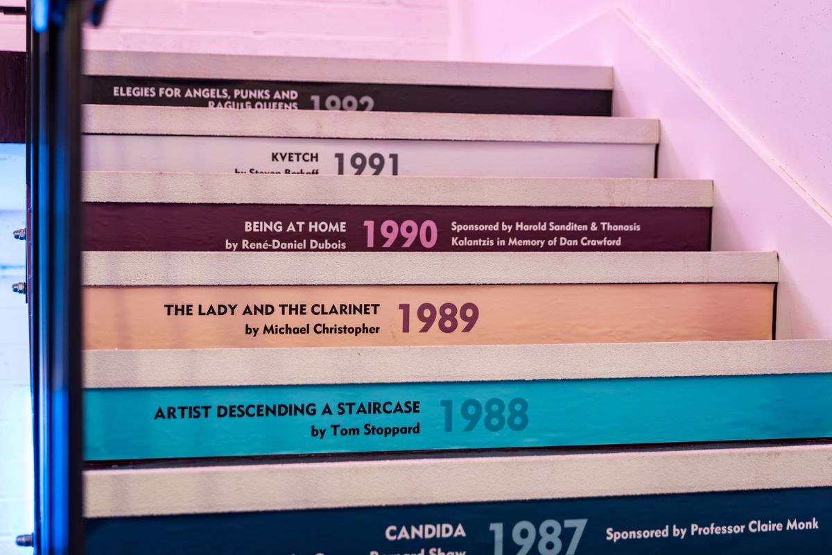 To honour our 53-year legacy left to us by Dan Crawford and Adam Spreadbury-Maher, we have fitted out our new theatre with 53 colourful stairs higlighting key shows from our 53 years at King's Head Theatre Pub.